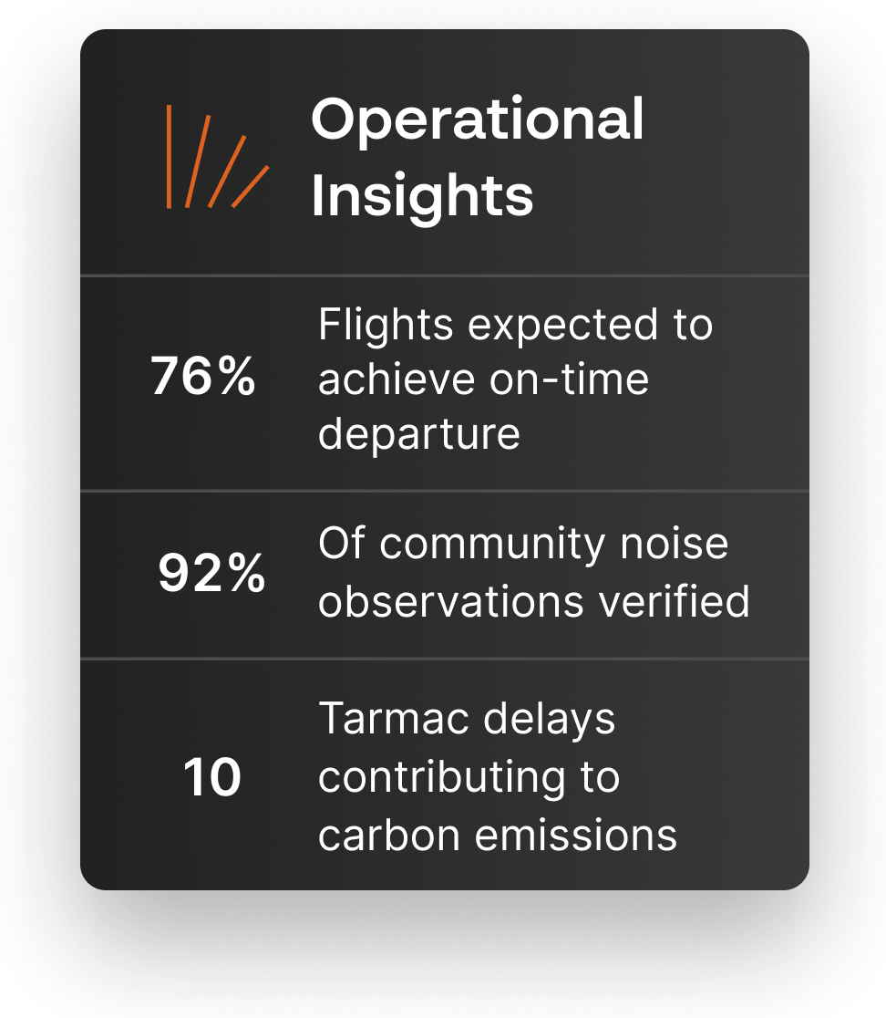 Heathrow, uno de los aeropuertos más transitados del mundo, necesitaba expandirse manteniendo al mismo tiempo relaciones sólidas con las comunidades circundantes. Para lograrlo, el aeropuerto recurrió a la monitorización del ruido en tiempo real y a soluciones transparentes para garantizar que se escuchaban y atendían las preocupaciones.Al proporcionar datos medioambientales accesibles y canales de comunicación abiertos, Heathrow ha fomentado la confianza con los residentes locales al tiempo que gestiona un crecimiento sostenible. Este enfoque proactivo favorece tanto la expansión operativa como el bienestar de la comunidad, estableciendo un punto de referencia para el desarrollo responsable de aeropuertos.