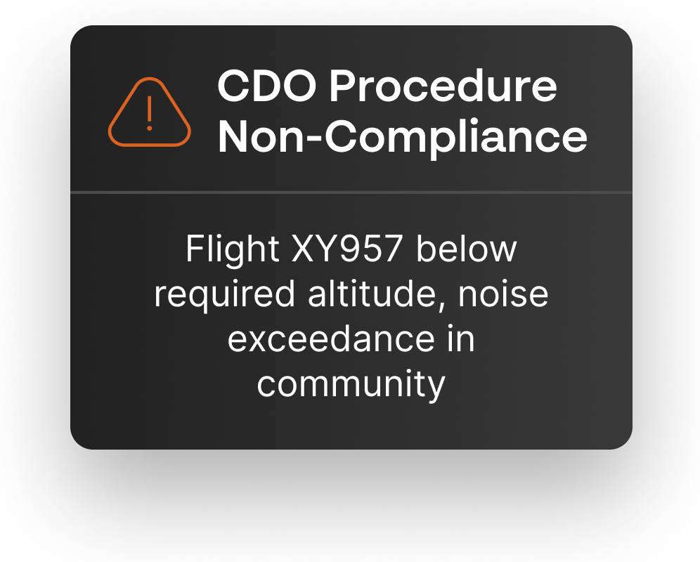 Vaya más allá de la monitorización de ruido estándar con una solución que se conecta directamente a los sistemas de radar y vuelo de su aeropuerto. Obtenga una imagen completa de la exposición al ruido y del cumplimiento de la normativa con la potente información de su red de monitorización.