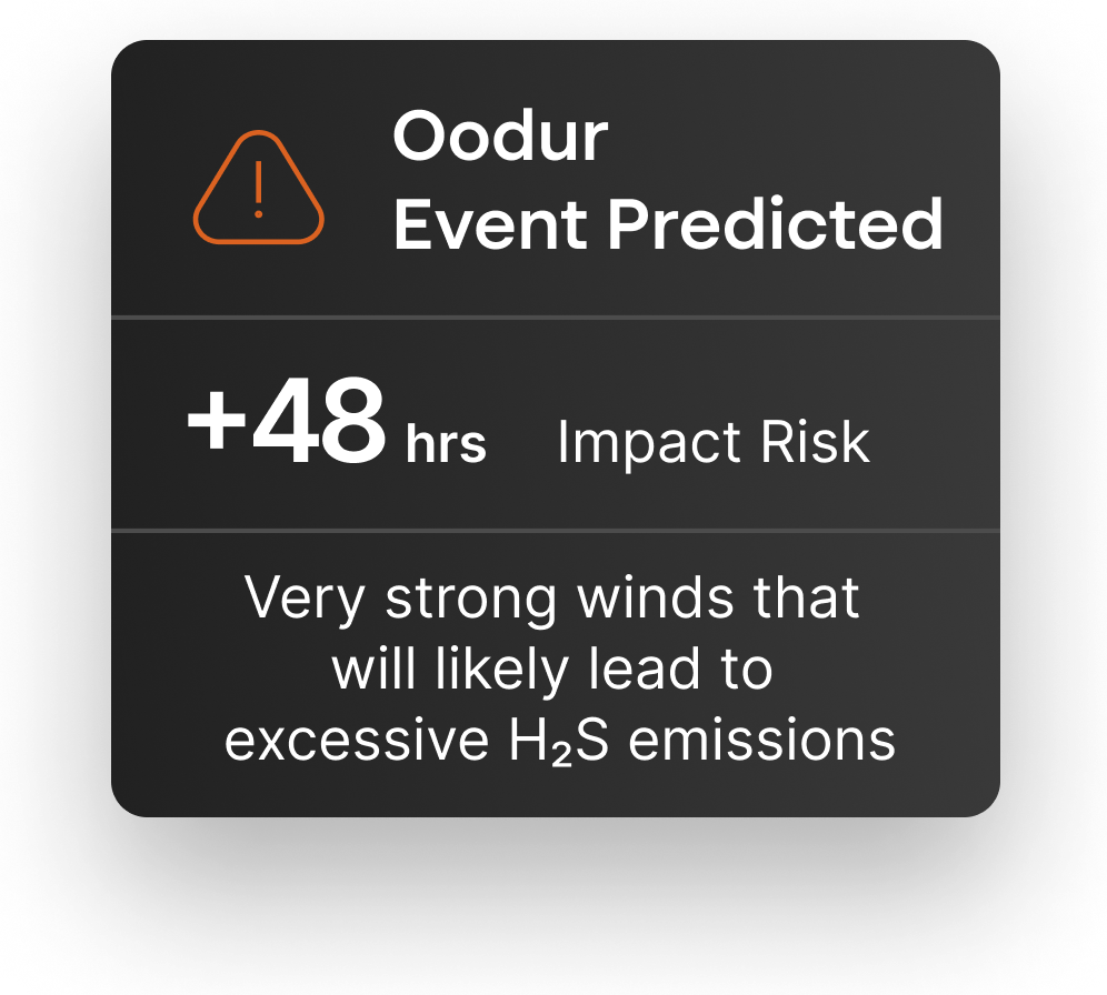 La mayoría de las instalaciones dependen de controles manuales de olores lentos, reactivos e incoherentes que utilizan datos estáticos. Sin un control en tiempo real, es difícil predecir sucesos, demostrar el cumplimiento de la normativa y defender las operaciones.