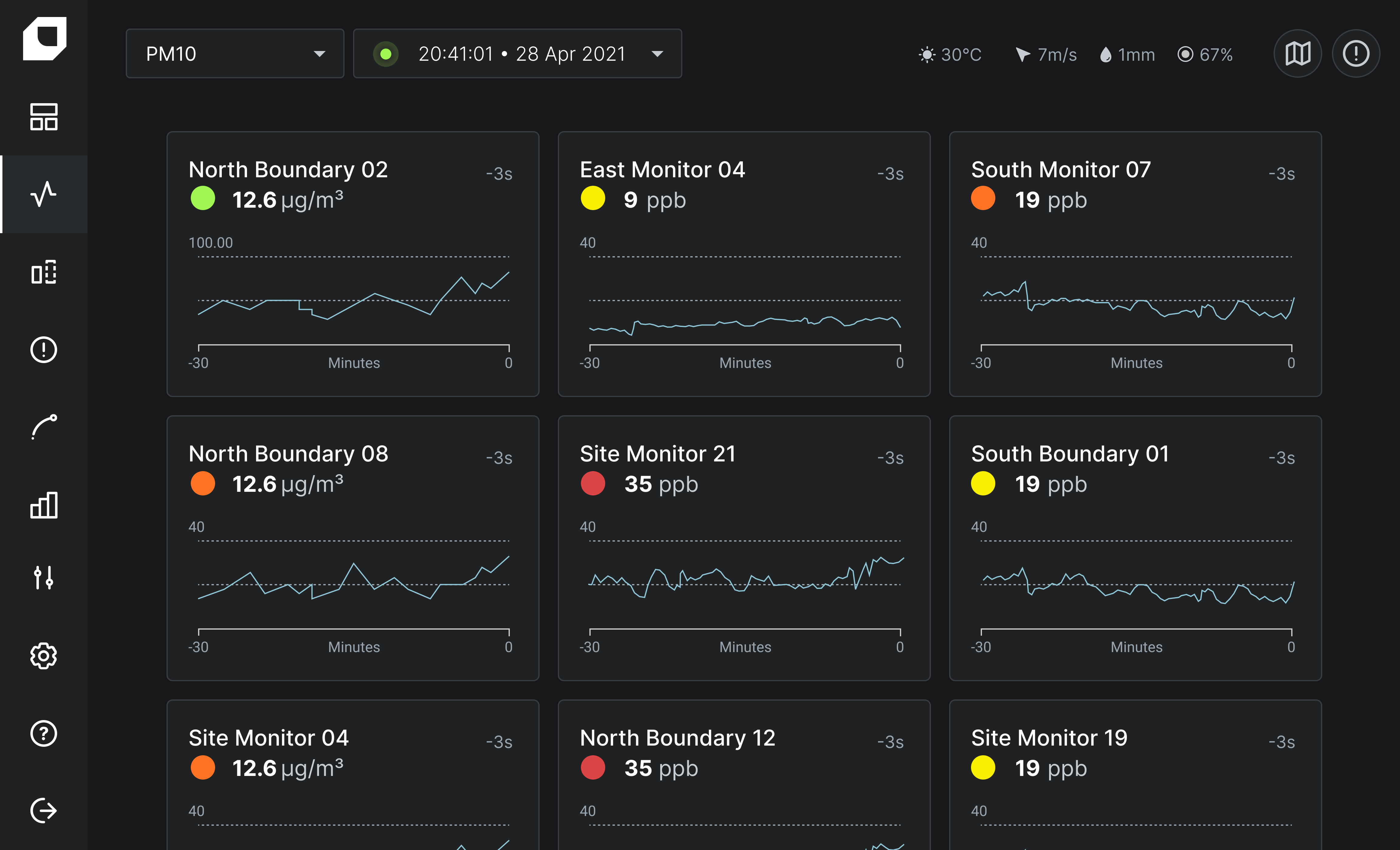 EVS Omnis muestra los niveles de emisión de su instalación, cuándo existe el riesgo de excederlos y exactamente dónde debe centrar su atención para mitigarlos. Su equipo podrá reducir la velocidad cuando lo necesite o duplicar la producción cuando no haya riesgo de impacto.