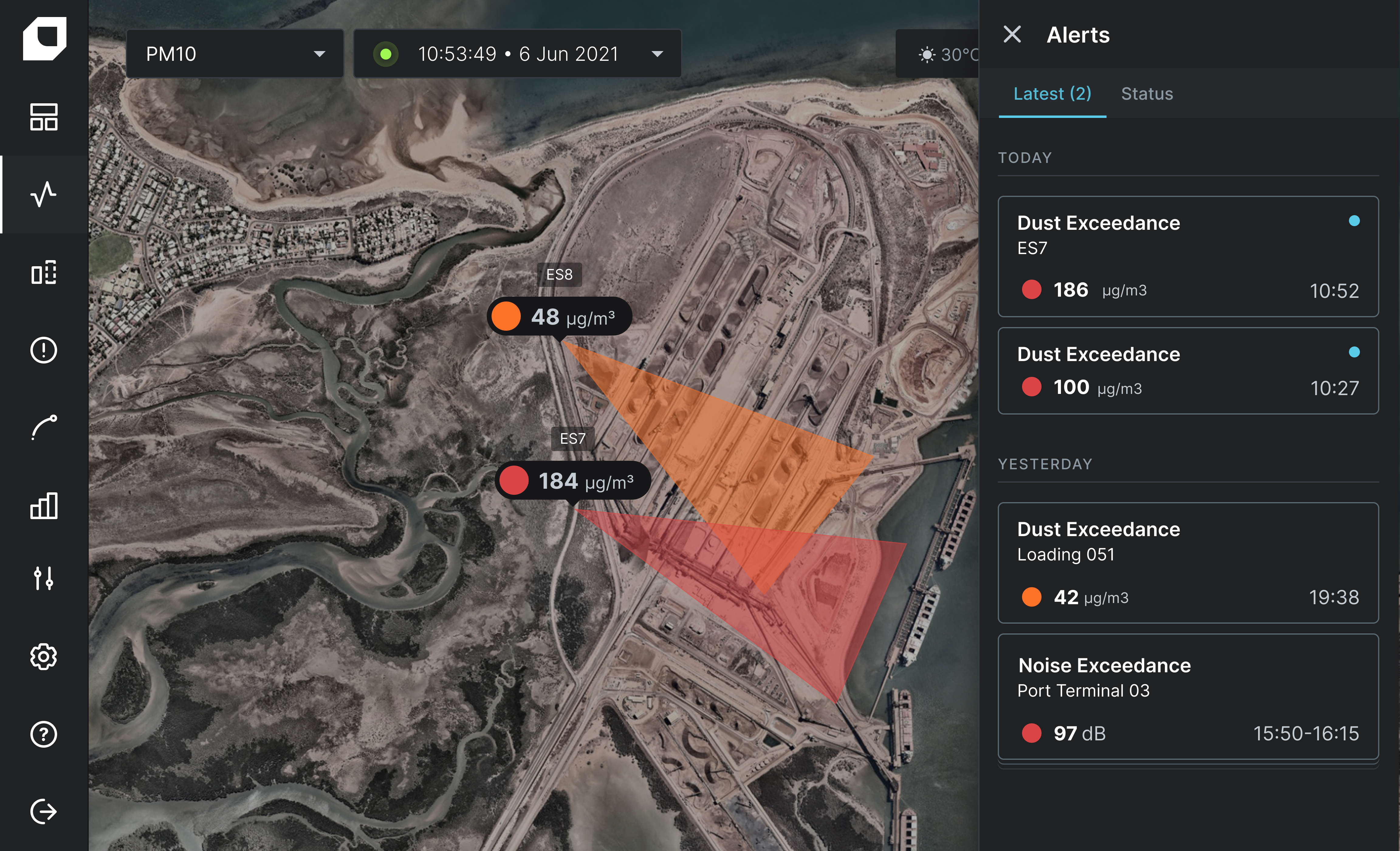 La calidad del aire, el polvo y otras emisiones procedentes de sus instalaciones pueden desencadenar quejas en la comunidad. Conocer cuándo está operando dentro de sus límites de cumplimiento de ruido puede ser la diferencia entre seguir operativo o parar sus actividades.