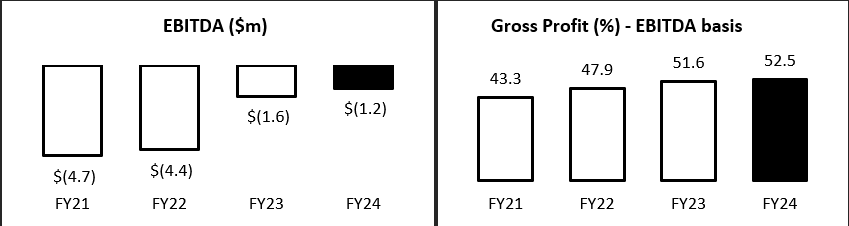 EBITDA improvement of 25.5% YoY to ($1.2m).